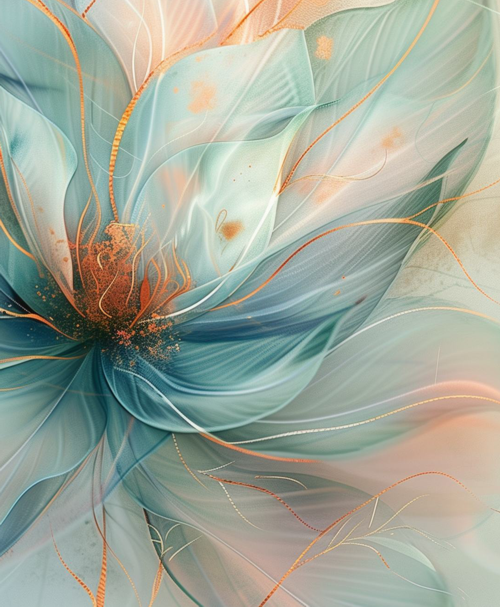 Bức tranh nổi bật với sự kết hợp tinh tế giữa các sắc thái hồng và xanh, tạo ra một hiệu ứng thị giác vừa dịu mắt vừa thu hút. Những bông hoa nhỏ xinh với nhiều hình dáng khác nhau được sắp xếp một cách tự nhiên trong chiếc bình màu xanh trang nhã, tạo nên một bố cục hài hòa và cân đối. Ánh sáng mềm mại bao phủ toàn bộ bức tranh, làm nổi bật vẻ đẹp tươi tắn và rạng rỡ của những bông hoa.