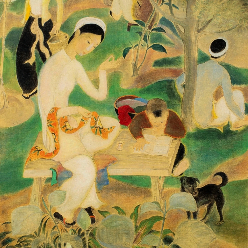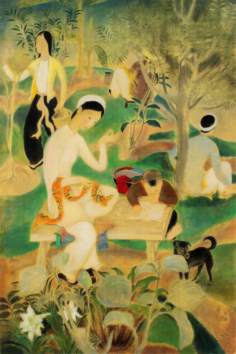 Tác phẩm thuộc giai đoạn sáng tác thứ hai trong sự nghiệp của Lê Phổ — cũng là giai đoạn giàu nội tâm và quan trọng bậc nhất. Đây là thời kỳ ông hoài niệm về quê hương từ phương xa, gửi gắm vào tranh những xúc cảm thẳm sâu, không thể biểu đạt chỉ bằng lời nói. Trong bức tranh, có thể thấy hình ảnh áo quần truyền thống xen lẫn với áo dài tân thời — chiếc áo dài mang phong cách Lê Phổ — gợi lên tinh thần nữ tính, chất thơ và cả biểu tượng của nữ quyền. Tranh được vẽ bằng kỹ thuật và bút pháp đặc trưng, đề tài phổ quát, và bảo quản trong tình trạng rất tốt, khiến cho tác phẩm dễ chạm đến cảm xúc của công chúng yêu mỹ thuật.