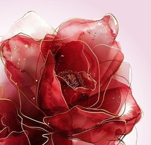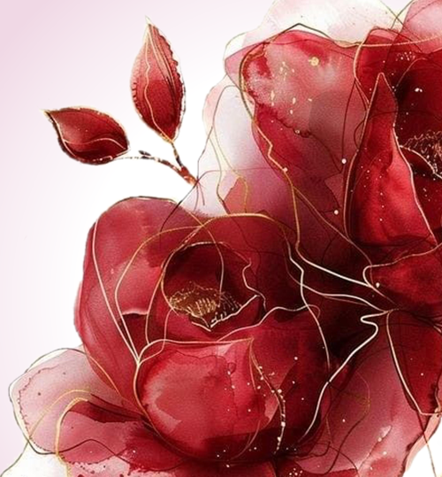 Sống Động & Thanh Lịch: Các sắc thái đỏ phong phú của hoa hồng kết hợp với các chi tiết vàng sang trọng tạo nên một tác phẩm trực quan ấn tượng và thanh lịch.