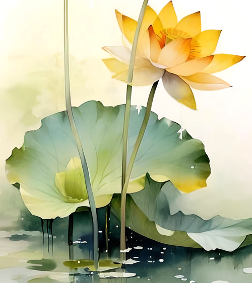 Hãy để không gian sống của bạn ngập tràn sự bình yên và vẻ đẹp thuần khiết với bức tranh hoa sen vàng tinh xảo này. Được thể hiện theo phong cách thủy mặc hoặc màu nước, tác phẩm nghệ thuật này không chỉ đơn thuần là một bức tranh mà còn là một biểu tượng của sự thanh tịnh, giác ngộ và may mắn trong văn hóa Á Đông.